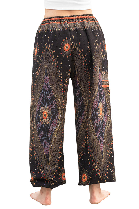 Diamond Rayon Peacock Pants in Black