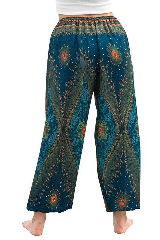 Majestic Peacock Rayon Pants in Green