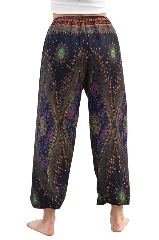 Majestic Peacock Rayon Pants in Black