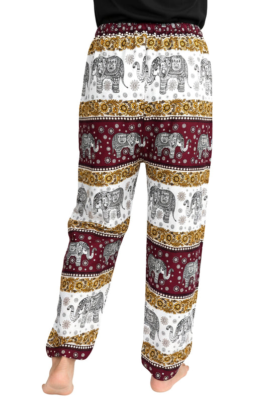 Elephant Mandala Rayon Pants in Burgundy