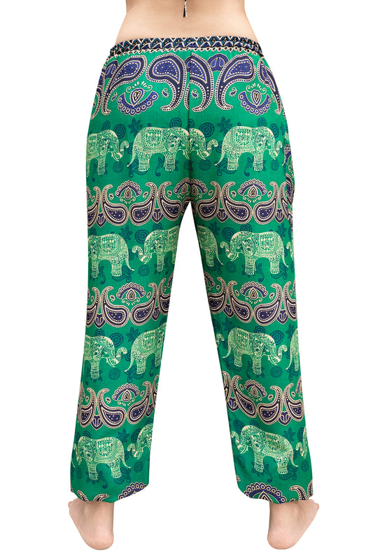 Paisley Elephant Rayon Pants in Green